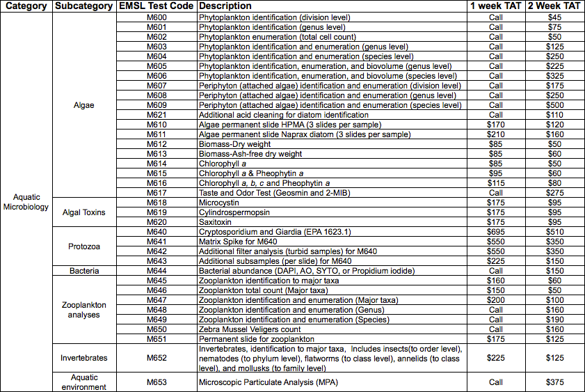 Algal identification, enumeration, and biovolume: M600 – M609, M621
